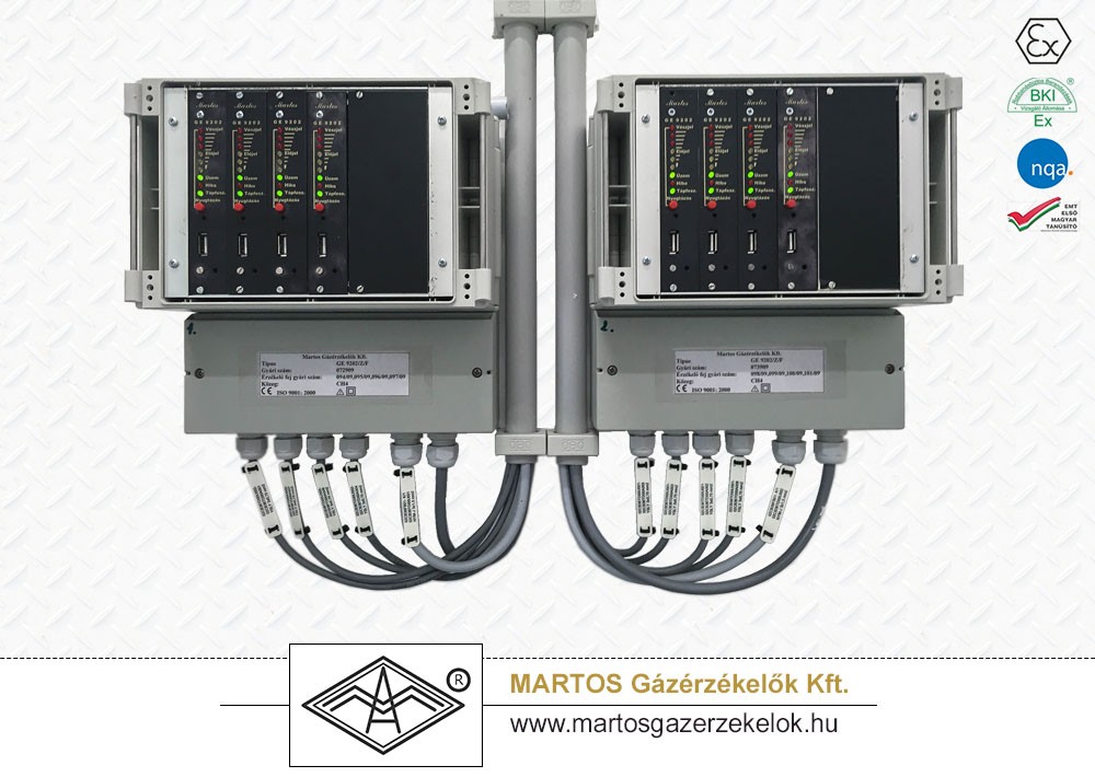 Robbanásbiztos érzékelőfejjel ellátott, helyhez kötött többcsatornás gázérzékelő. Műszerszekrénybe építhető kialakítás (4-8 csatorna 19”-os keretben.) Robbanásveszélyes gázok, gőzök robbanás elleni védelmére, légtérbe került toxikus gázok kimutatására.